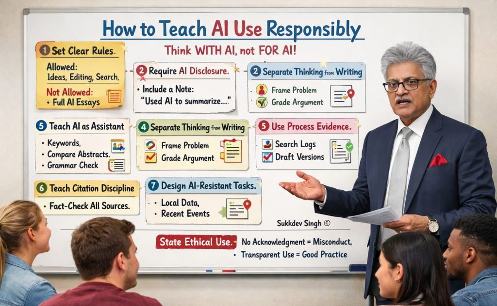 Citation discipline must be taught early and repeatedly. AI can fabricate references, blend sources, and paraphrase without attribution. Students often trust it blindly. They should not. Train them to verify every citation using Google Scholar or Scopus. Make verification a habit, not a warning. Once students understand how easily errors slip in, they become more cautious and responsible.